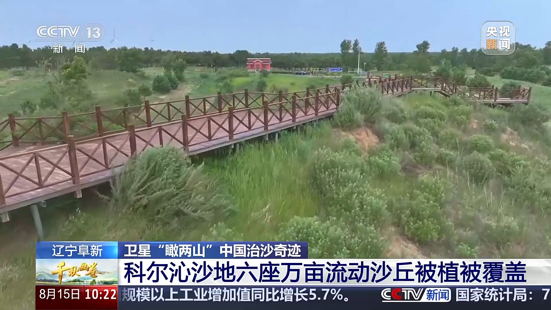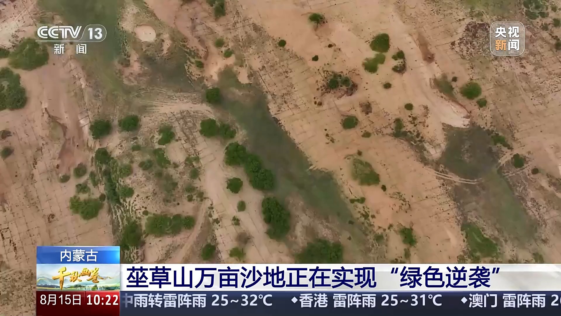 跟随卫星视角,这里是内蒙古高原东部的浑善达克沙地。莝草山,位于赤峰市克什克腾旗策略资本,由于西北风常年吹蚀,这里遍布沙丘和风蚀坑。去年5月,当地启动综合治理。通过卫星影像,我们能清晰地看到密密麻麻的草方格,如同编织的棋盘,纵横交错、紧密相连,其中很多已经萌发出绿意,牢牢锁住流沙奔袭的脚步。